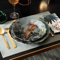 Maisons Du Monde Assiettes à Dessert Assiette à Dessert En Faïence Noire Motifs Roses – Lot De 6