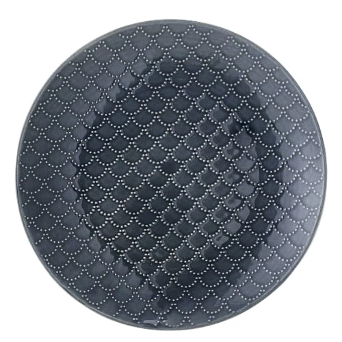 Maisons Du Monde Assiettes Plates Assiette Plate En Grès écru à Motifs Gris Anthracites – Lot De 6
