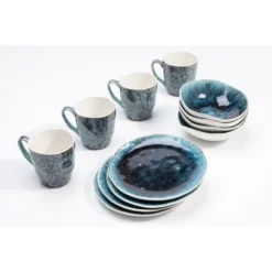 Kare Design Assiettes Plates Lot 4 Bols, 4 Tasses, 4 Assiettes D27, 4 Assiettes D21 En Grès Gris