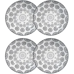 Maisons Du Monde Vaisselle De Noël Assiette Creuse En Grès Noir/blanc D 20 Cm – Lot De 4