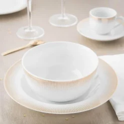 Maisons Du Monde Vaisselle De Noël Assiette Creuse En Porcelaine Blanche Et Dorée – Lot De 6