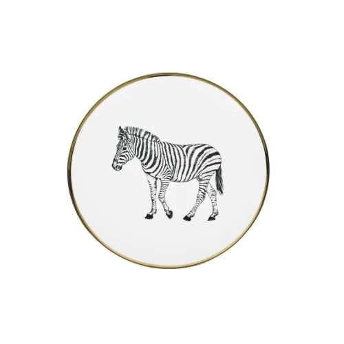 Assiette à dessert en porcelaine de Limoges avec un motif zébré.