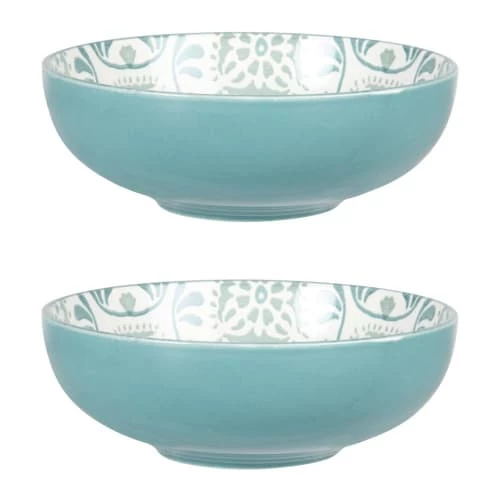 Maisons Du Monde Assiettes Creuses Assiette Creuse En Grès Blanc à Motifs Bleus Et Gris – Lot De 4