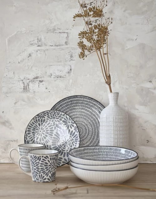 Maisons Du Monde Assiettes à Dessert Assiette à Dessert En Grès Blanc Motifs Graphiques Bleus – Lot De 4