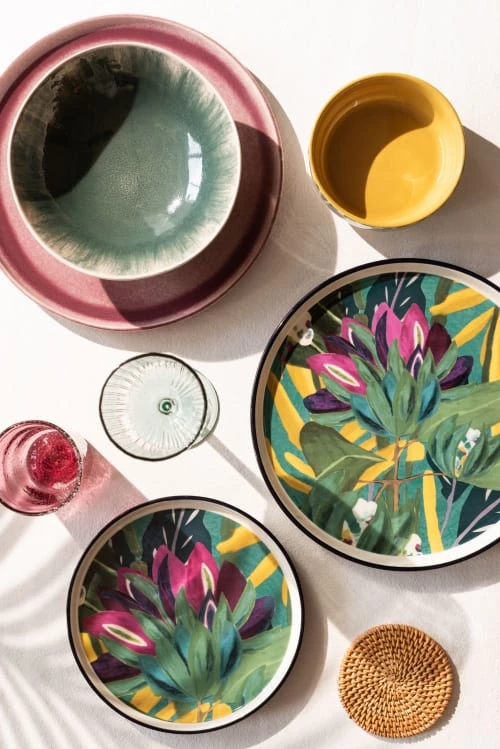 Maisons Du Monde Assiettes à Dessert Assiette à Dessert En Grès Ivoire Motif Végétal Multicolore – Lot De 6