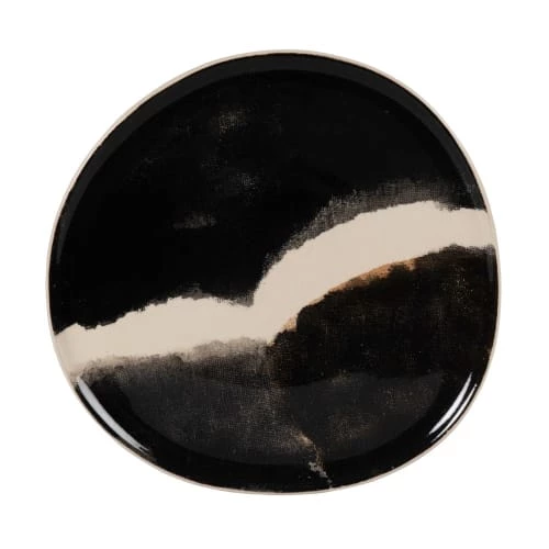Maisons Du Monde Assiettes Plates Assiette Plate En Grès écru à Motifs Gris Anthracites – Lot De 6