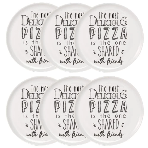 Maisons Du Monde Assiettes Plates Assiette Plate En Grès écru à Motifs Gris Anthracites – Lot De 6
