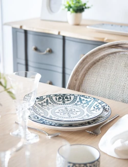 Maisons Du Monde Assiettes Plates Assiette Plate En Faïence Bleue Et Blanche Motifs Graphiques – Lot De 6