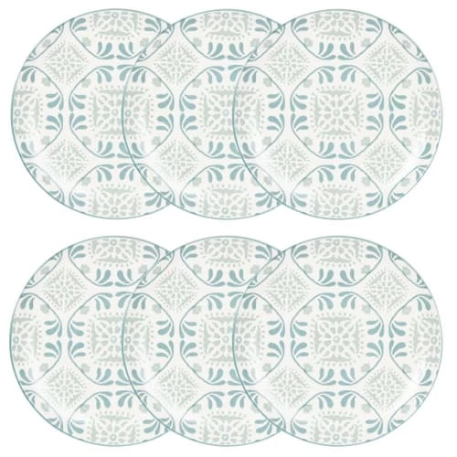 Maisons Du Monde Assiettes Plates Assiette Plate En Grès Blanc à Motifs Bleus Et Gris – Lot De 6