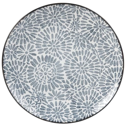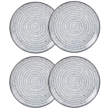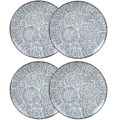 Maisons Du Monde Assiettes Plates Assiette Plate En Grès Blanc Motifs Graphiques Bleus – Lot De 4