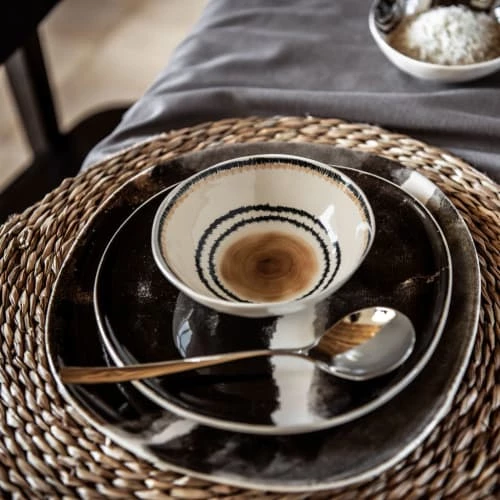 Maisons Du Monde Assiettes Plates Assiette Plate En Grès Marron, Blanc Et Noir – Lot De 6