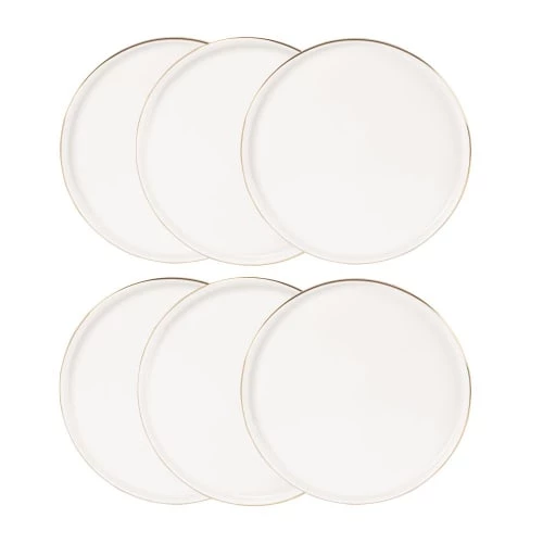 Maisons Du Monde Assiettes Plates Assiette Plate En Porcelaine Blanche à Bord Doré – Lot De 6