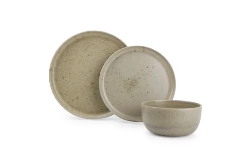 Maisons Du Monde Assiettes Plates Assiette Plate En Grès écru à Motifs Gris Anthracites – Lot De 6