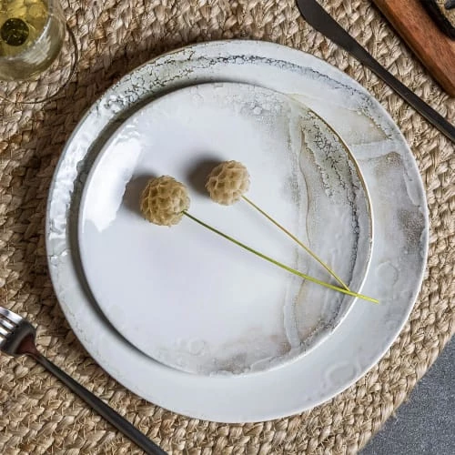 Maisons Du Monde Assiettes Plates Assiette Plate En Grès écru à Motifs Gris Anthracites – Lot De 6