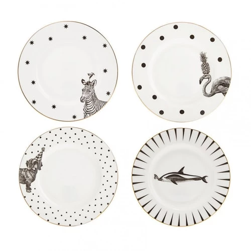 Maisons Du Monde Assiettes Plates Assiette Plate En Grès écru à Motifs Gris Anthracites – Lot De 6